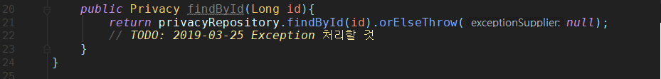 Repository에서 Id 값을 이용하여 해당하는 데이터를 가져오려는 method를 생성 중 에러가 나서