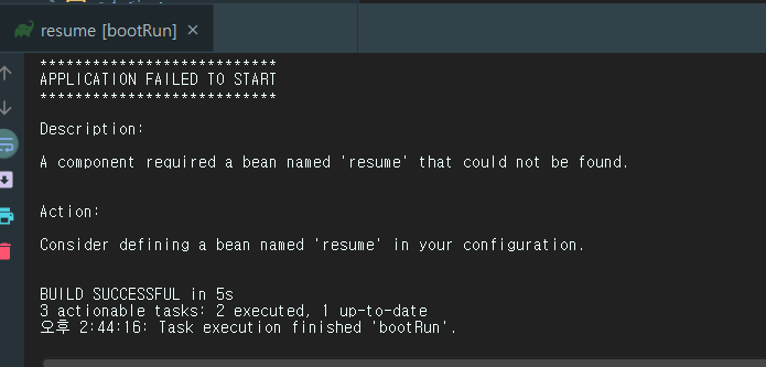 구성요소에서 `resume`이라는 bean을 찾을 수 없다고 한다.