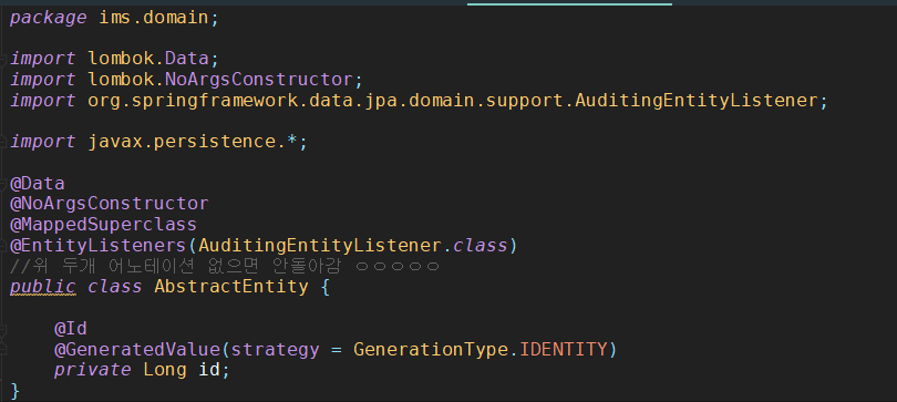 또 다른 점이라면 `AbstrachEntity 라는 Class를 상속받는다`는 것인데 이 내부를 들어가면