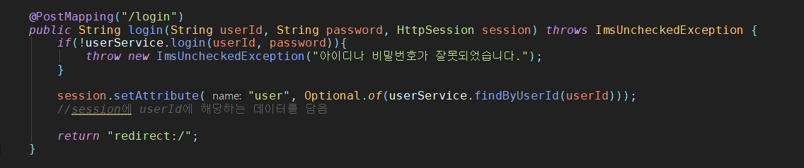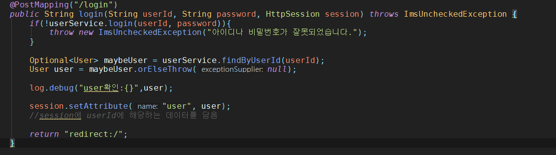 login 메서드에서 들어온 값으로 DB의 값을 호출해 담고,