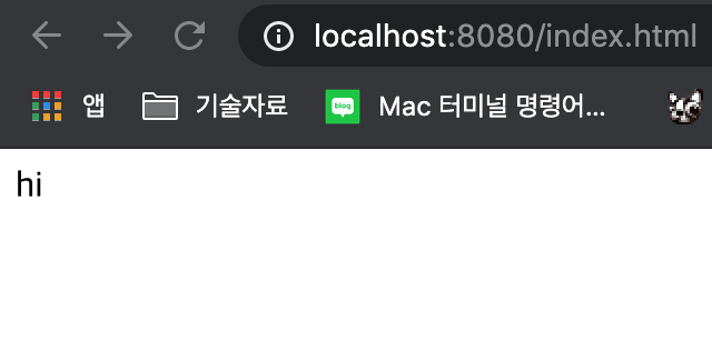 이전엔 /index.html을 붙여도 hi만 나오던 창이 아래와 같이 제대로 /index.html의 내용이 나오는 걸 확인하였다.