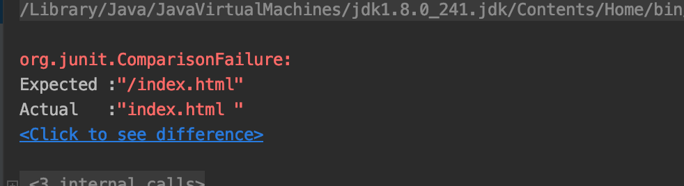 그러나 테스트 결과는 실패했는데 띄어쓰기로 잘라야 하는걸 "/"로 잘라냈기 때문에 결괏값이 다르게 나왔다.