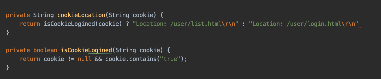 Cookie가 null이 아니고 Cookie의 값 안에 "true & false"의 값에 해당하는 Location을 반환해주는 Method를 구현했다.