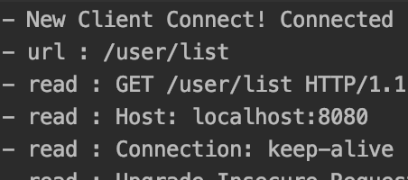 그 후 Request Handler Class로 돌아와 아래와 같이 /user/list에 해당하는 Header를 호출하는 값을 지정 후 테스트를 진행한 결과