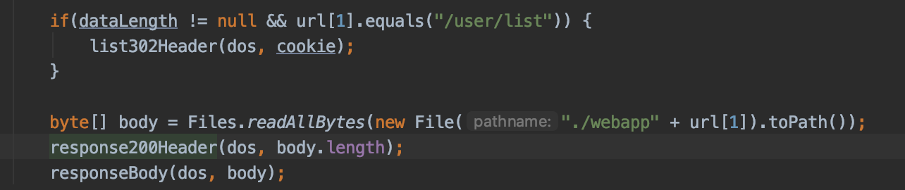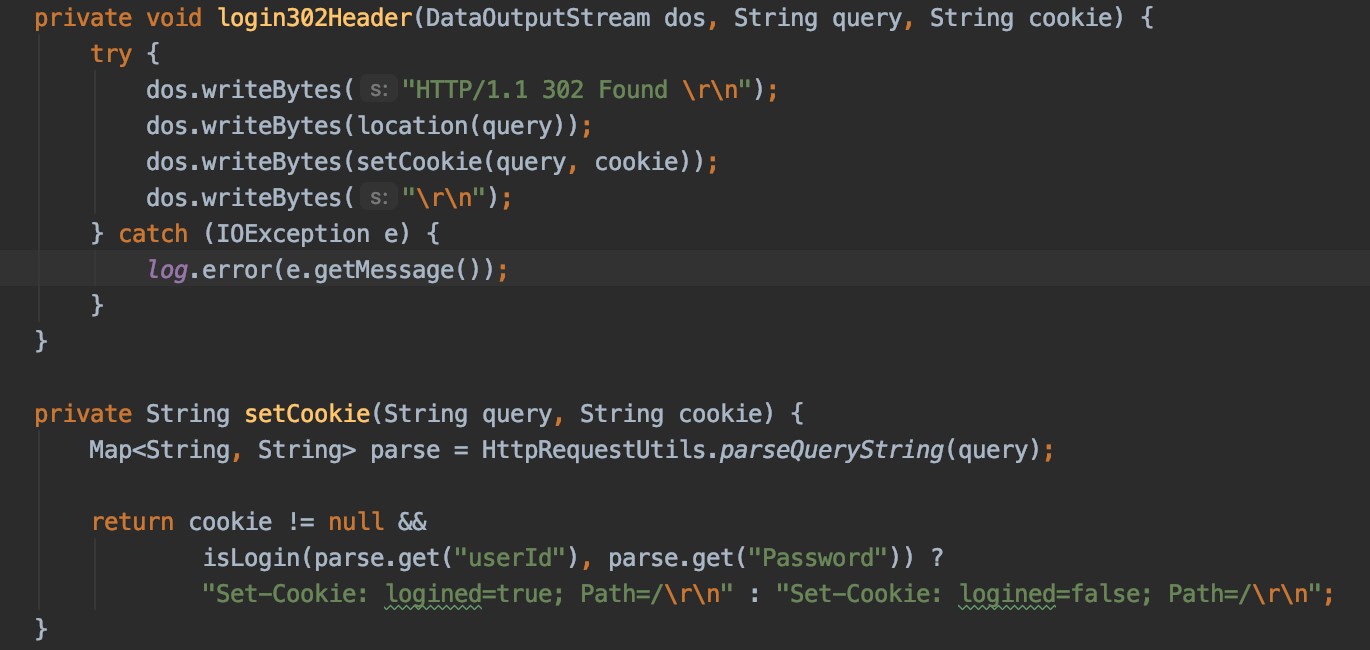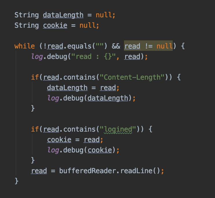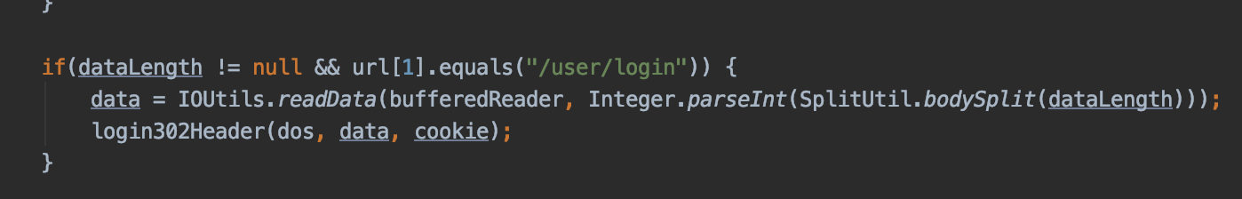 login302Header에 정해둔 Cookie를 넘기기 위해서 cookie라는 변수를 만들고 bufferedReader.readLine Method로 가져온