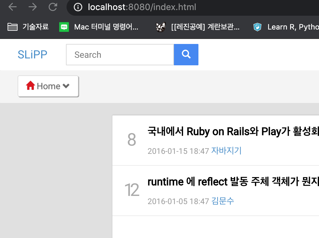 지금까지 실습한 결과 html 파일은 불러오지만, 그 외 js, css 등의 stylesheet 파일은 제대로 호출해오지 못했다.