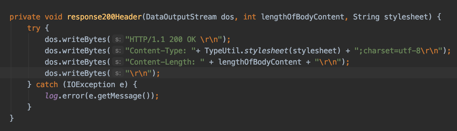 이제 styleshees를 적용하기 위해 코드를 작성할 것인데, 먼저 response200Header Method에 parameter를 추가했다.