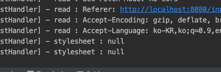 logger를 이용해 stylesheet를 확인해보니 js같은 일부 파일을 불러들이지 못하는 것이 확인되어 코드를 수정하였다.