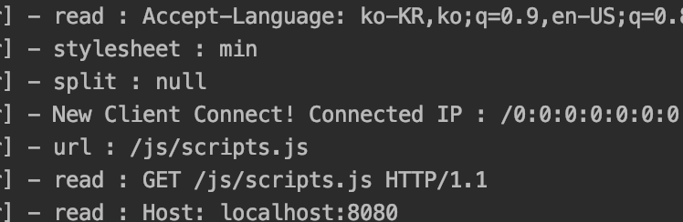 클라이언트가 /index.html을 호출하면 html 파일에 지정된 파일들의 개수만큼 n번의 쓰레드가 생성된다.