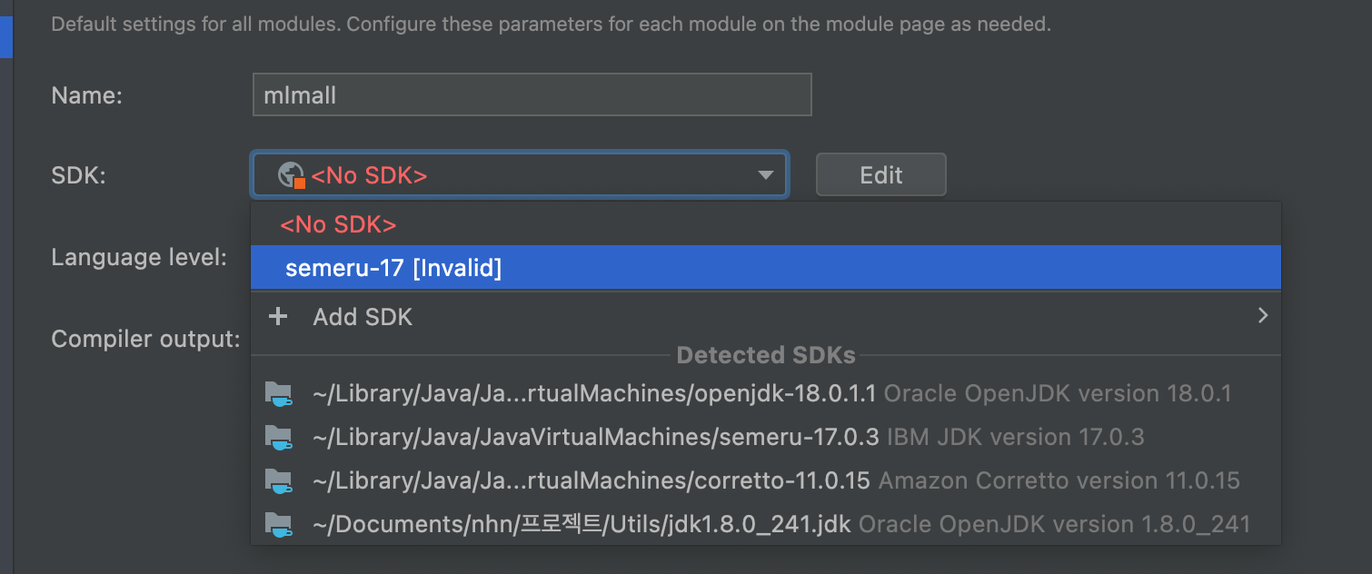 2. add SDK 중 JDK...를 누른 뒤 command + shift + g 키를 눌러 1번에서 찾은 경로로 접근한다.